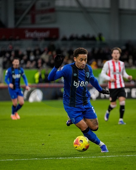 Marcus Tavernier of Bournemouth dribbles the ball during the Premier League match Brentford vs Bournemouth at The Gtech Community Stadium, London, United Kingdom, 27th December 2025, Credit:Maynard Manyowa/News Images / Avalon