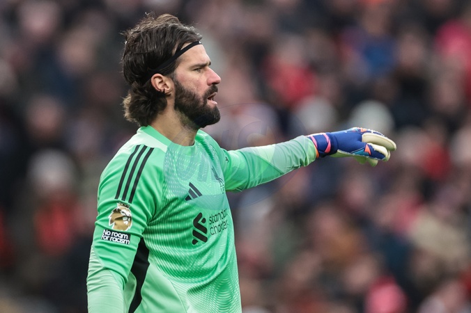 Alisson Becker of Liverpool gives his team instructions during the Premier League match Liverpool vs Wolverhampton Wanderers at Anfield, Liverpool, United Kingdom, 27th December 2025, Credit:Mark Cosgrove/News Images / Avalon