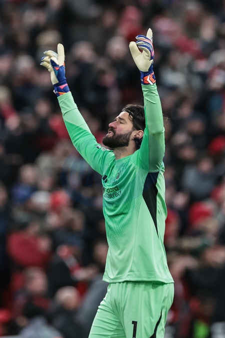 Alisson Becker of Liverpool celebrates a goal during the Premier League match Liverpool vs Wolverhampton Wanderers at Anfield, Liverpool, United Kingdom, 27th December 2025, Credit:Mark Cosgrove/News Images / Avalon