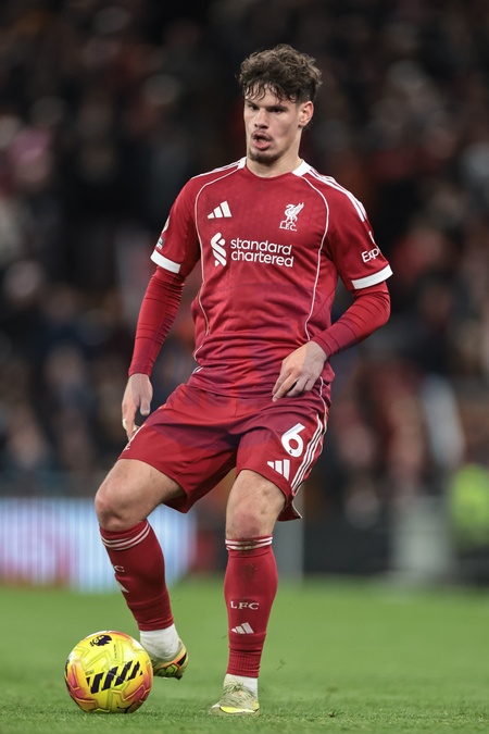 Milos Kerkez of Liverpool breaks with the ball during the Premier League match Liverpool vs Wolverhampton Wanderers at Anfield, Liverpool, United Kingdom, 27th December 2025, Credit:Mark Cosgrove/News Images / Avalon