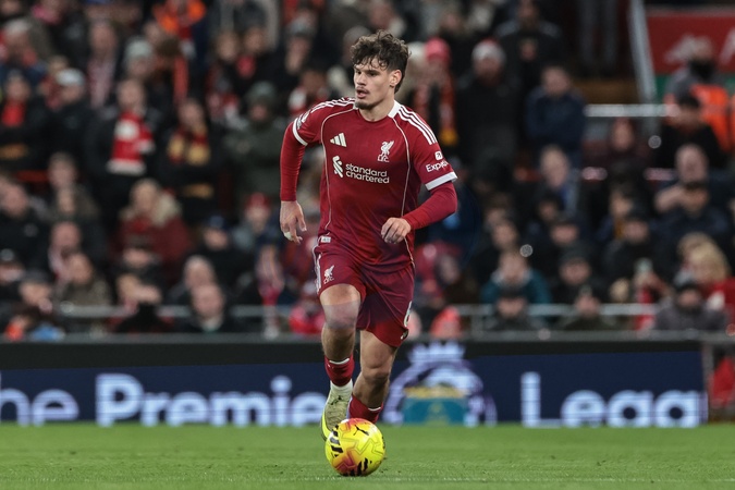 Milos Kerkez of Liverpool breaks with the ball during the Premier League match Liverpool vs Wolverhampton Wanderers at Anfield, Liverpool, United Kingdom, 27th December 2025, Credit:Mark Cosgrove/News Images / Avalon