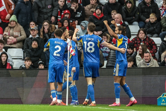 Dominic Calvert-Lewin of Leeds United celebrates his goal to make it 1-1 during the Premier League match Sunderland vs Leeds United at Stadium Of Light, Sunderland, United Kingdom, 28th December 2025, Credit:Ae Cosgrove/News Images / Avalon