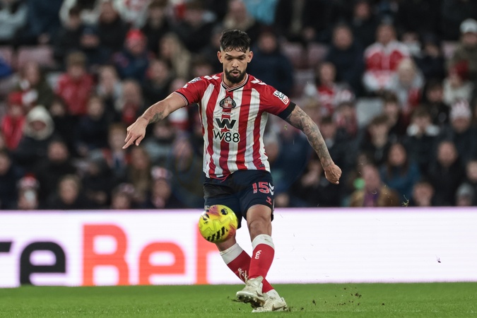 Omar Alderete of Sunderland with the ball during the Premier League match Sunderland vs Leeds United at Stadium Of Light, Sunderland, United Kingdom, 28th December 2025, Credit:Ae Cosgrove/News Images / Avalon