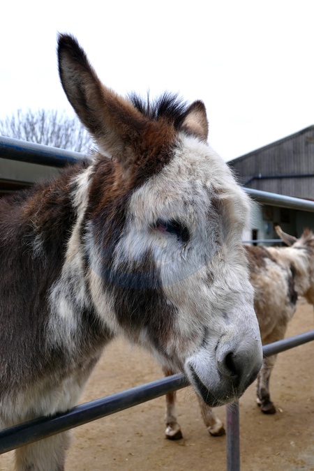 Donkeys out in their paddocks on a cold, grey day in the countryside. Island Farm Donkey Sanctuary is a registered charity that cares for ill-treated and neglected donkeys and other animals. They currently have over 100 donkeys that we they for passionately.The first donkeys arrived in the late Eighties and this initial rescue work was privately funded In 1997 the Sanctuary became affiliated to a charity allowing the rescue work to continue while fund raising and promotion could began in earnest with appearances at country shows, steam rallies and village fetes. This initial period was invaluable because it gave the chance to prove that the Sanctuary could be run as a business while maintaining the important care and attention to every individual donkey. All this effort paid off, when in July 2000 the Sanctuary was registered with the Charity Commission and from then became known as Island Farm Donkey Sanctuary., Credit:Geoffrey Swaine / Avalon