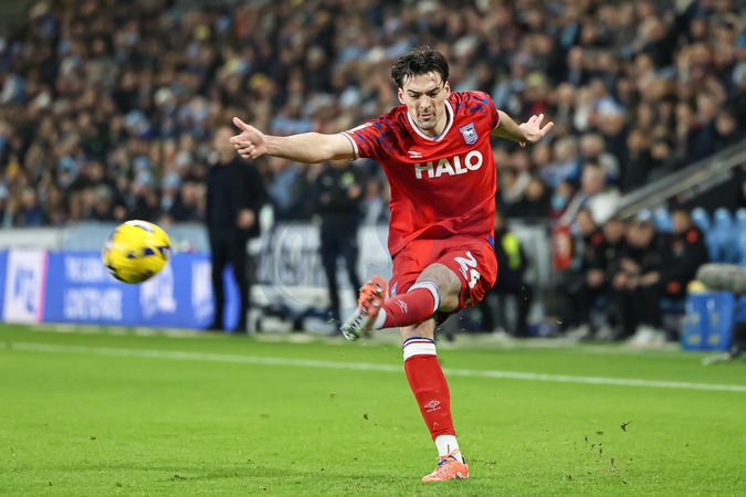 Jacob Greaves of Ipswich Town with the ball during the Sky Bet Championship match Coventry City vs Ipswich Town at Coventry Building Society Arena, Coventry, United Kingdom, 29th December 2025, Credit:Euan Manning/News Images / Avalon