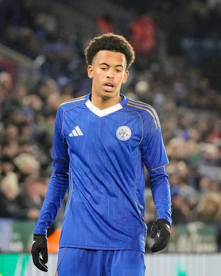 Louis Page of Leicester City during the Sky Bet Championship match Leicester City vs Derby County at King Power Stadium, Leicester, United Kingdom, 29th December 2025, Credit:Maynard Manyowa/News Images / Avalon