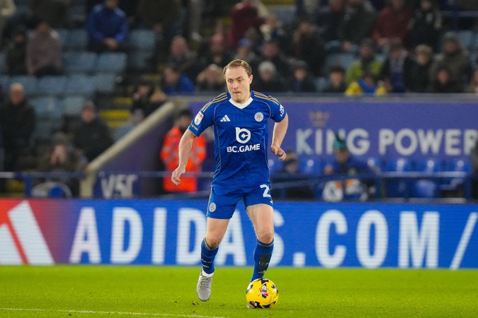Oliver Skipp of Leicester City makes a run with the ball during the Sky Bet Championship match Leicester City vs Derby County at King Power Stadium, Leicester, United Kingdom, 29th December 2025, Credit:Maynard Manyowa/News Images / Avalon