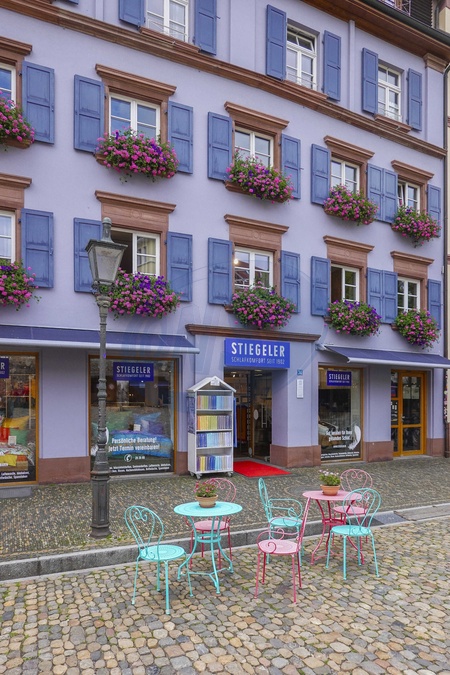 Germany, Freiburg im Breisgau, The Augustinerplatz is one of the central squares in the old city. Famous cobblestone square with colorful facades of historical houses, Credit:Fabio Mazzarella / Avalon