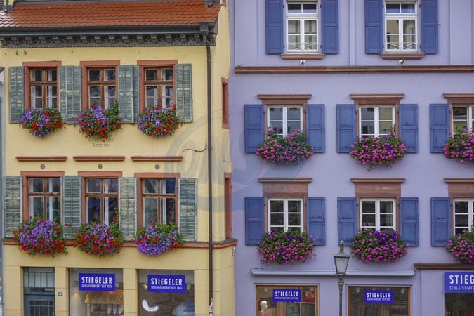 Germany, Freiburg im Breisgau, The Augustinerplatz is one of the central squares in the old city. Famous cobblestone square with colorful facades of historical houses, Credit:Fabio Mazzarella / Avalon