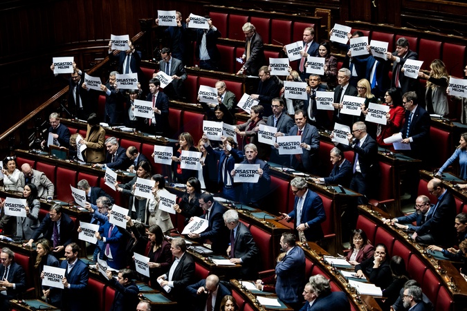 Chamber, Final vote on the Budget bill. Pictured is the opposition protest after the vote. Rome, Italy 30 December 2025, Credit:Francesco Fotia / Avalon