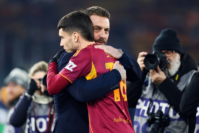 Stadio Olimpico, Serie A 2025-26 football championship Roma-Genoa, in the photo Genoa coach Daniele De Rossi greets Matias Soule' at the start of the match . Rome, Italy 29 December 2025, Credit:Federico Proietti / AGF / Avalon