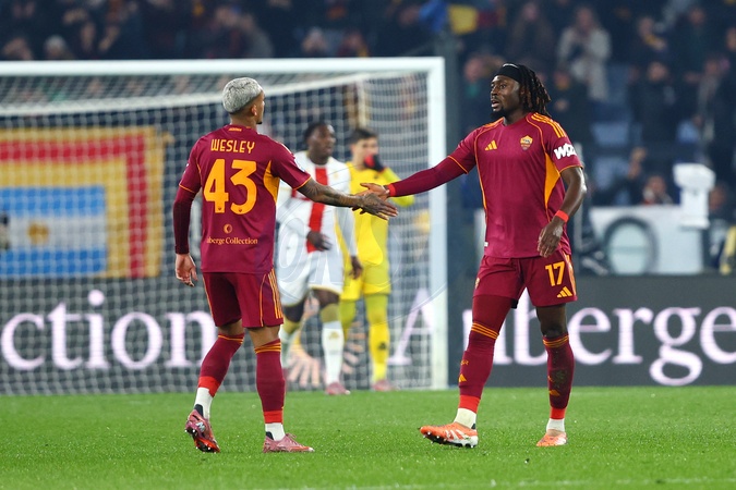 Stadio Olimpico, Serie A 2025-26 football championship, Roma-Genoa, in the photo Franca Lima Wesley and Manu Kone' celebrate Matias Soule's goal . Rome, Italy 29 December 2025, Credit:Federico Proietti / AGF / Avalon