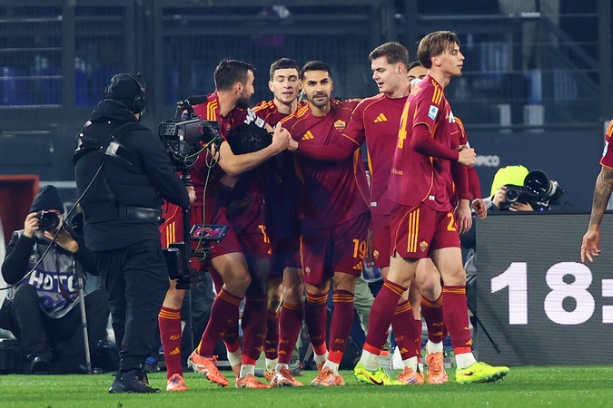 Stadio Olimpico, Serie A 2025-26 football championship Roma-Genoa, in the photo Matias Soule' celebrates with his teammates after the goal . Rome, Italy 29 December 2025, Credit:Federico Proietti / AGF / Avalon