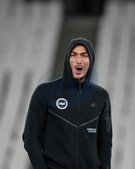 Diego Coppola of Brighton & Hove Albion inspects the pitch prior to kick off during the Premier League match West Ham United vs Brighton and Hove Albion at London Stadium, London, United Kingdom, 30th December 2025, Credit:Maynard Manyowa/News Images / Avalon