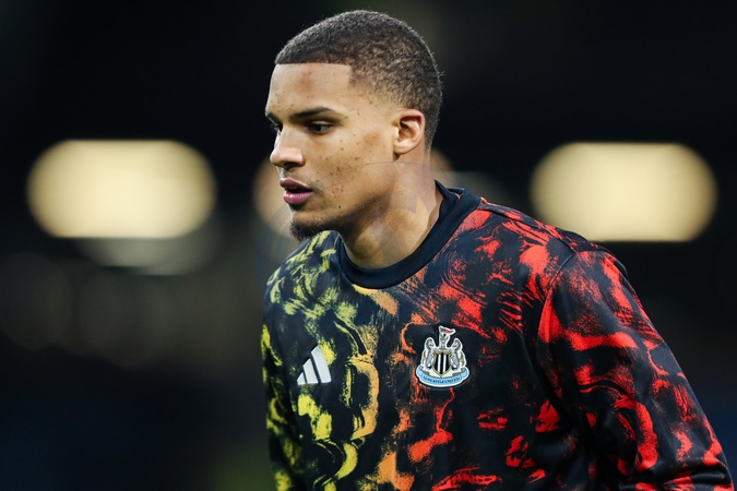 Malick Thiaw of Newcastle United warms up ahead of the Premier League match Burnley vs Newcastle United at Turf Moor, Burnley, United Kingdom, 30th December 2025, Credit:Jorge Horsted/News Images / Avalon