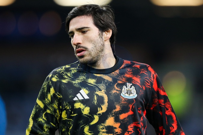 Sandro Tonali of Newcastle United warms up ahead of the Premier League match Burnley vs Newcastle United at Turf Moor, Burnley, United Kingdom, 30th December 2025, Credit:Jorge Horsted/News Images / Avalon