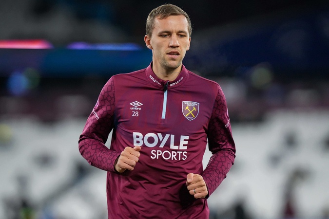 Tomáš Souček of West Ham United warms up during the Premier League match West Ham United vs Brighton and Hove Albion at London Stadium, London, United Kingdom, 30th December 2025, Credit:Maynard Manyowa/News Images / Avalon