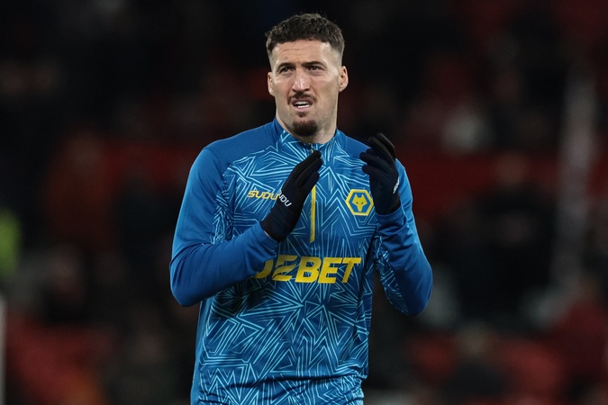 Matt Doherty of Wolverhampton Wanderers applauds the traveling fans in the pregame warmup session during the Premier League match Manchester United vs Wolverhampton Wanderers at Old Trafford, Manchester, United Kingdom, 30th December 2025, Credit:Mark Cosgrove/News Images / Avalon