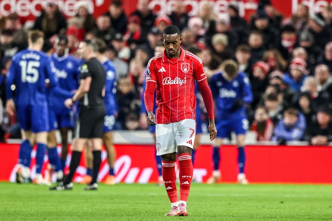 A dejected Callum Hudson-Odoi of Nottingham Forest as James Garner of Everton celebrates his goal to make it 0-1 during the Premier League match Nottingham Forest vs Everton at City Ground, Nottingham, United Kingdom, 30th December 2025, Credit:Ae Cosgrove/News Images / Avalon
