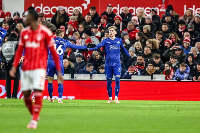 James Garner of Everton celebrates his goal to make it 0-1 during the Premier League match Nottingham Forest vs Everton at City Ground, Nottingham, United Kingdom, 30th December 2025, Credit:Ae Cosgrove/News Images / Avalon