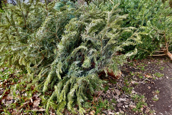 Dumped Christmas trees by the side of the road after Christmas., Credit:Geoffrey Swaine / Avalon