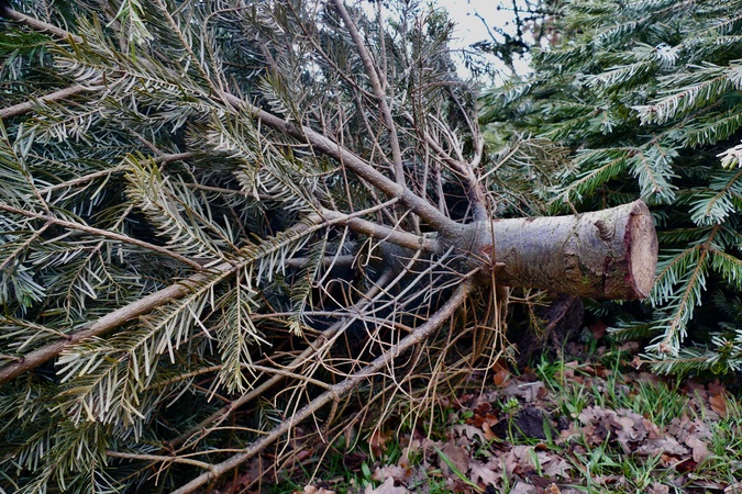 Dumped Christmas trees by the side of the road after Christmas., Credit:Geoffrey Swaine / Avalon