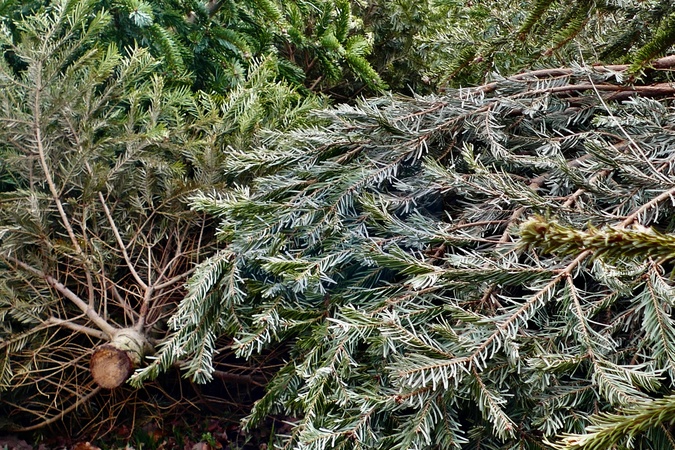 Dumped Christmas trees by the side of the road after Christmas., Credit:Geoffrey Swaine / Avalon