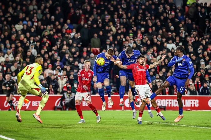 James Tarkowski of Everton heads on goal during the Premier League match Nottingham Forest vs Everton at City Ground, Nottingham, United Kingdom, 30th December 2025, Credit:Ae Cosgrove/News Images / Avalon