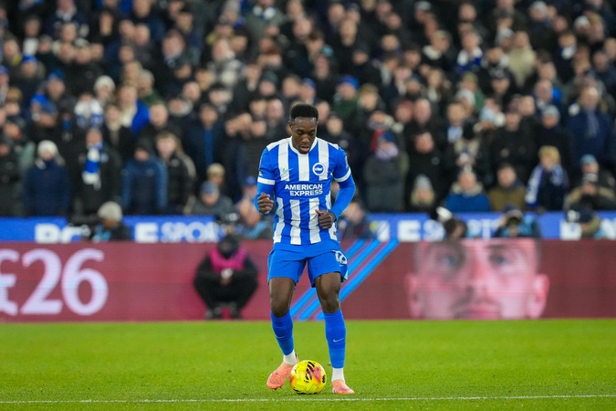Danny Welbeck of Brighton & Hove Albion passes the ball during the Premier League match West Ham United vs Brighton and Hove Albion at London Stadium, London, United Kingdom, 30th December 2025, Credit:Maynard Manyowa/News Images / Avalon