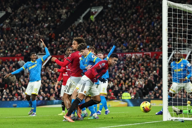 Joshua Zirkzee of Manchester United heads just wide of the post during the Premier League match Manchester United vs Wolverhampton Wanderers at Old Trafford, Manchester, United Kingdom, 30th December 2025, Credit:Mark Cosgrove/News Images / Avalon