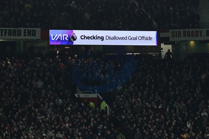 VAR checks Patrick Dorgu of Manchester United's goal as it was ruled offside during the Premier League match Manchester United vs Wolverhampton Wanderers at Old Trafford, Manchester, United Kingdom, 30th December 2025, Credit:Mark Cosgrove/News Images / Avalon