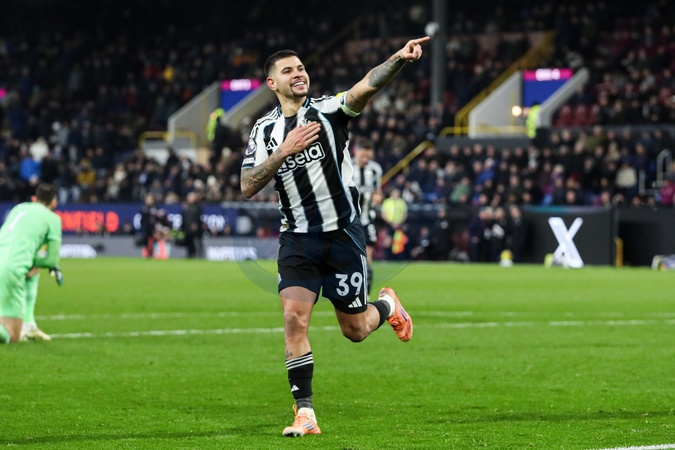 Bruno Guimaraes of Newcastle United scores and celebrates to make it 1-3 during the Premier League match Burnley vs Newcastle United at Turf Moor, Burnley, United Kingdom, 30th December 2025, Credit:Jorge Horsted/News Images / Avalon