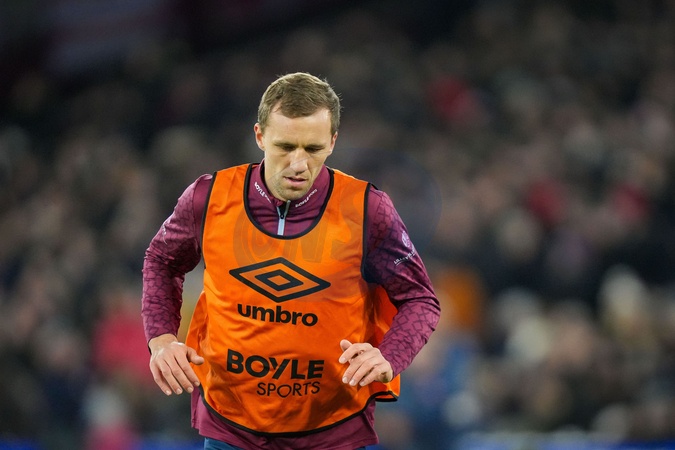 Tomáš Souček of West Ham United warming up during the Premier League match West Ham United vs Brighton and Hove Albion at London Stadium, London, United Kingdom, 30th December 2025, Credit:Maynard Manyowa/News Images / Avalon