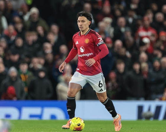 Lisandro Martinez of Manchester United with the ball during the Premier League match Manchester United vs Wolverhampton Wanderers at Old Trafford, Manchester, United Kingdom, 30th December 2025, Credit:Mark Cosgrove/News Images / Avalon