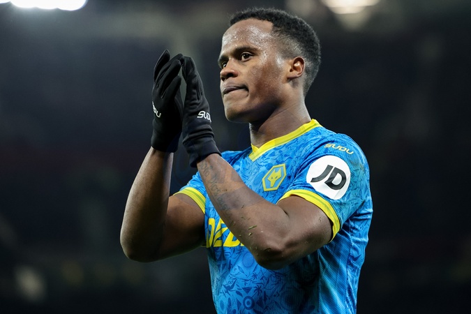 Jhon Arias of Wolverhampton Wanderers applauds the fans during the Premier League match Manchester United vs Wolverhampton Wanderers at Old Trafford, Manchester, United Kingdom, 30th December 2025, Credit:Mark Cosgrove/News Images / Avalon