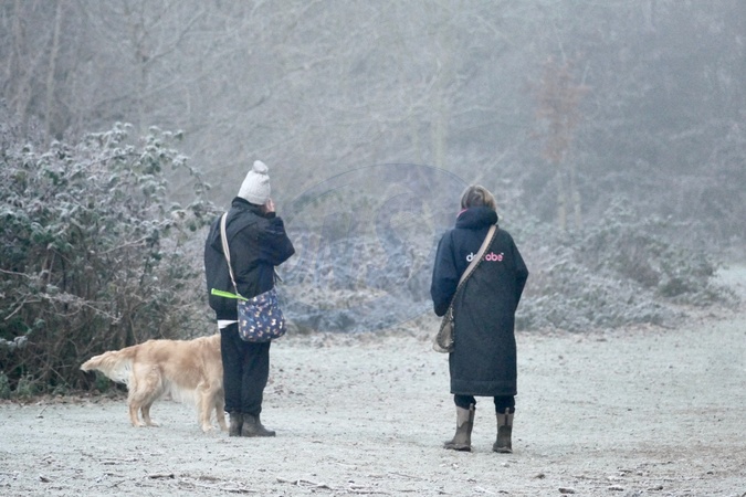 Walkers out on a cold, frosty and foggy morning in the countryside., Credit:Geoffrey Swaine / Avalon
