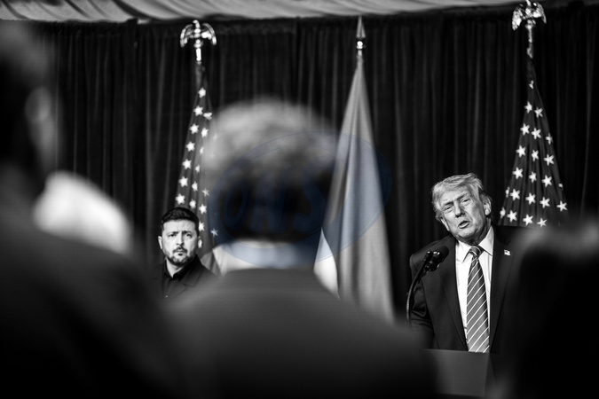 President Donald Trump participates in a joint press conference alongside Ukranian President Volodymyr Zelensky at Mar-a-Lago in Palm Beach, Florida, December 28, 2025., Credit:Daniel Torok / Avalon