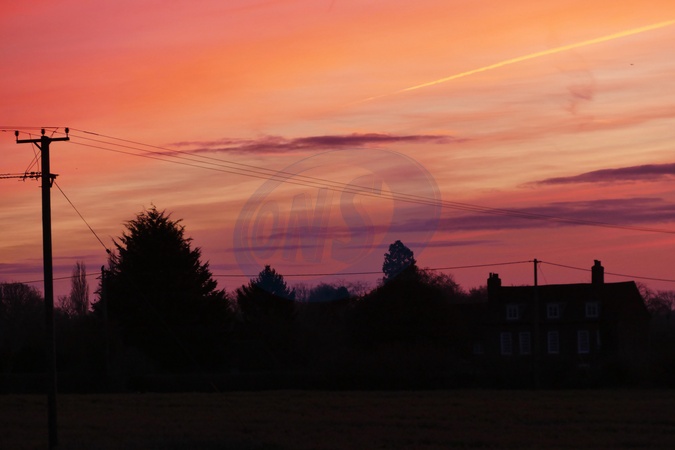 Colourful skies at dawn over the countryside on a cold and frosty morning in the countryside., Credit:Geoffrey Swaine / Avalon