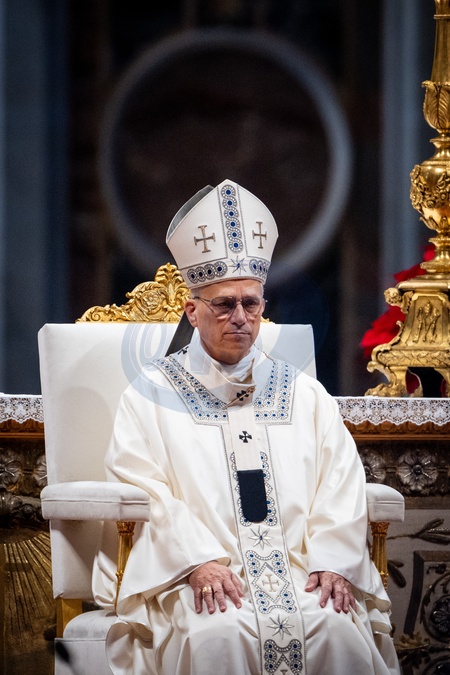 Pope Leo XIV celebrates his first public Mass of 2026 on the Solemnity of Mary, Mother of God, in St. Peter's Basilica in Vatican City, Vatican on 01 January 2026.