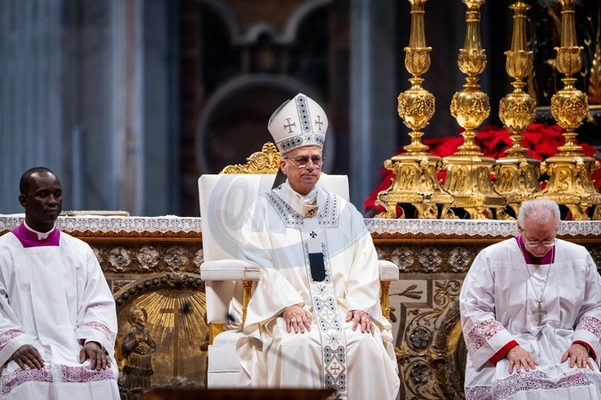 Pope Leo XIV celebrates his first public Mass of 2026 on the Solemnity of Mary, Mother of God, in St. Peter's Basilica in Vatican City, Vatican on 01 January 2026.