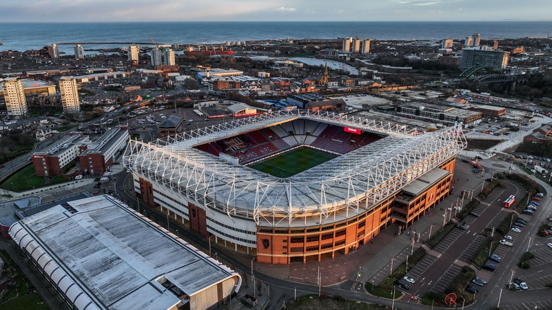 An aerial view of the Stadium Of Light ahead of the Premier League match Sunderland vs Manchester City at Stadium Of Light, Sunderland, United Kingdom, 1st January 2026, Credit:Ae Cosgrove/News Images / Avalon