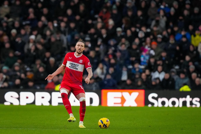 Luke Ayling of Middlesbrough controls the ball during the Sky Bet Championship match Derby County vs Middlesbrough at Pride Park Stadium, Derby, United Kingdom, 1st January 2026, Credit:Maynard Manyowa/News Images / Avalon