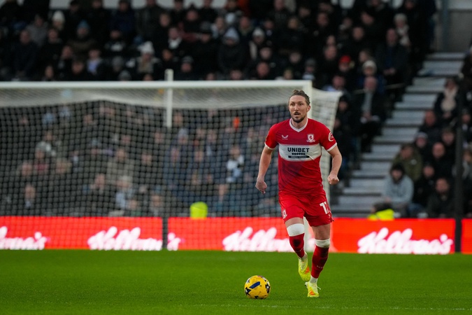 Luke Ayling of Middlesbrough controls the ball during the Sky Bet Championship match Derby County vs Middlesbrough at Pride Park Stadium, Derby, United Kingdom, 1st January 2026, Credit:Maynard Manyowa/News Images / Avalon