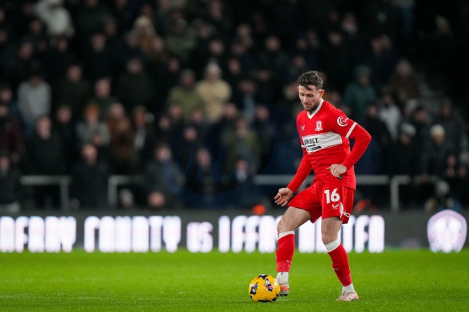 Alan Browne of Middlesbrough passes the ball during the Sky Bet Championship match Derby County vs Middlesbrough at Pride Park Stadium, Derby, United Kingdom, 1st January 2026, Credit:Maynard Manyowa/News Images / Avalon