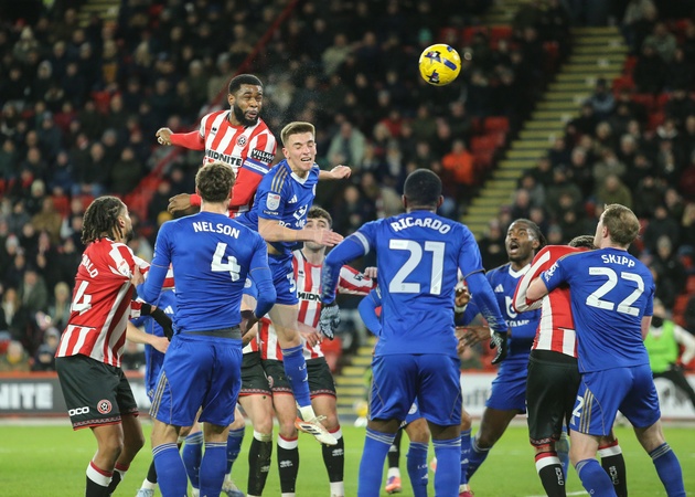 Japhet Tanganga of Sheffield United scores to make it 1-0 during the Sky Bet Championship match Sheffield United vs Leicester City at Bramall Lane, Sheffield, United Kingdom, 1st January 2026, Credit:Richard Bierton/News Images / Avalon