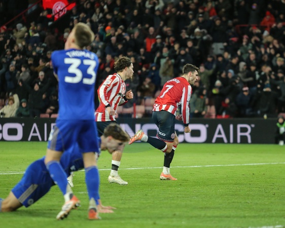 Thomas Cannon of Sheffield United celebrates his goal to make it 2-0 during the Sky Bet Championship match Sheffield United vs Leicester City at Bramall Lane, Sheffield, United Kingdom, 1st January 2026, Credit:Richard Bierton/News Images / Avalon