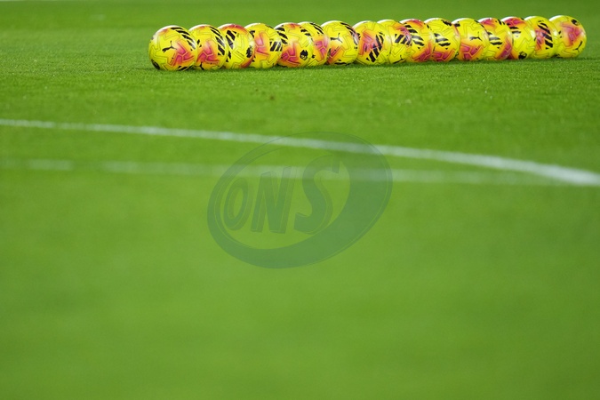 A line of premier league official match balls ahead of the Premier League match Brentford vs Tottenham Hotspur at The Gtech Community Stadium, London, United Kingdom, 1st January 2026, Credit:Harvey Murphy/News Images / Avalon