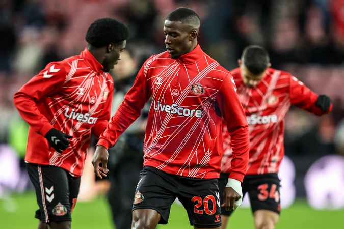 Nordi Mukiele of Sunderland in the pregame warmup session during the Premier League match Sunderland vs Manchester City at Stadium Of Light, Sunderland, United Kingdom, 1st January 2026, Credit:Ae Cosgrove/News Images / Avalon