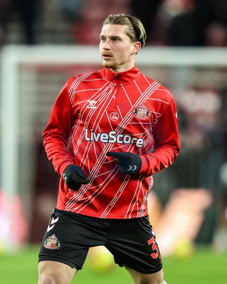 Dennis Cirkin of Sunderland in the pregame warmup session during the Premier League match Sunderland vs Manchester City at Stadium Of Light, Sunderland, United Kingdom, 1st January 2026, Credit:Ae Cosgrove/News Images / Avalon
