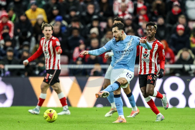 Rayan Cherki of Manchester City passes the ball during the Premier League match Sunderland vs Manchester City at Stadium Of Light, Sunderland, United Kingdom, 1st January 2026, Credit:Ae Cosgrove/News Images / Avalon